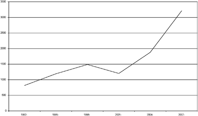 Abbildung 10: Volumen des Tagesumsatzes auf den Deveisen-Austausch-Börsen (in Millarden Dollar) 1992-2007 und Anteil der großen Banken am Devisenhandel (2007)